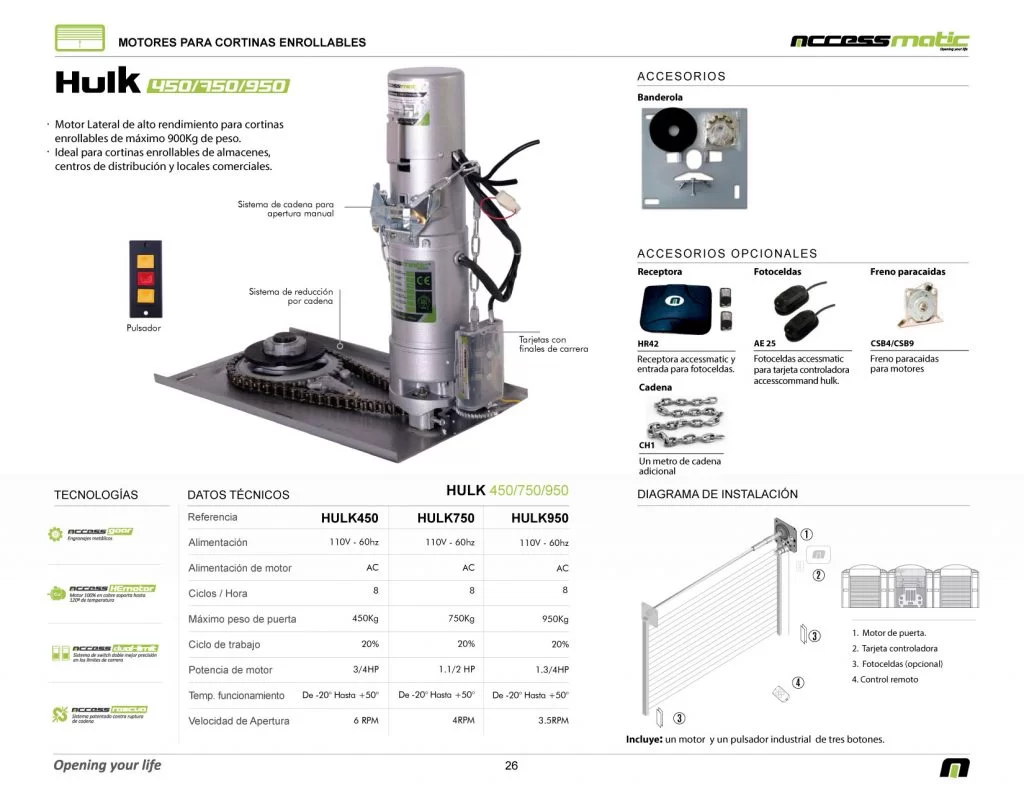 Motor para Puerta Enrollable Accessmatik Hulk 450